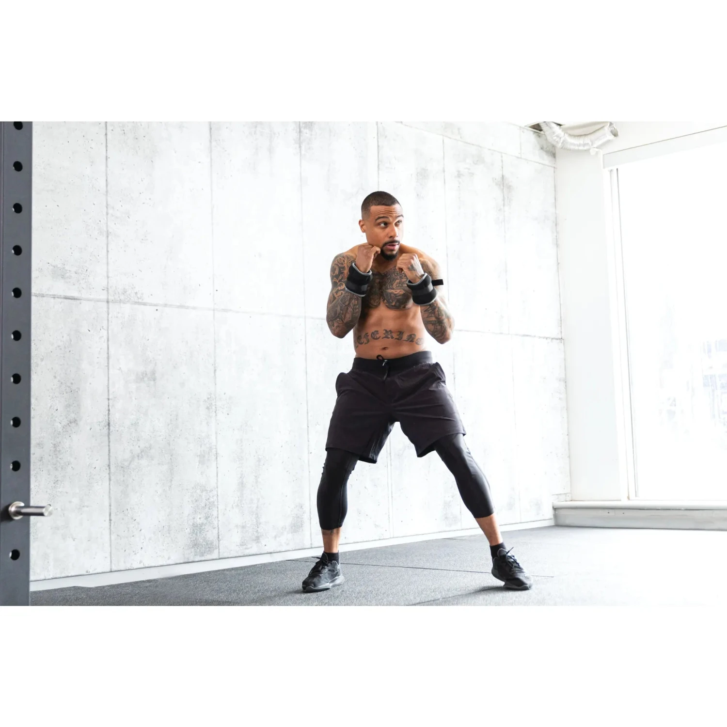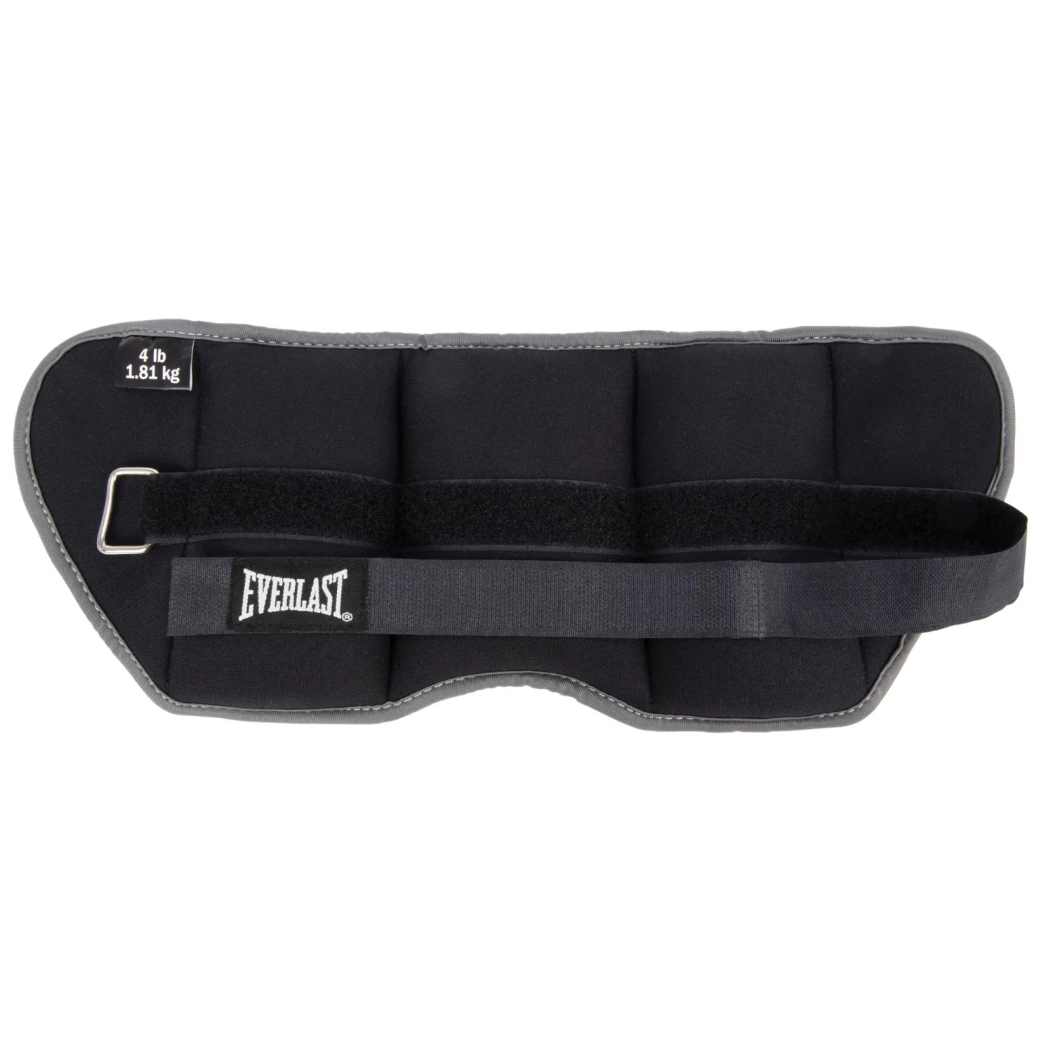 Increase your level of intensity during your daily exercises using the Everlast Ankle Wrist Weights. These weights feature a hook and loop closure to fasten securely around the ankles or wrists for a desired fit. The brushed polyester material provides a comfortable feel throughout your workout. Each weight contains sealed sand filled compartments for consistent weight distribution, weighing 4 LBS (1.8 KGS) each for a total of 8 LBS (3.6 KGS). These one-size-fits-most weights will help you strengthen and tone the biceps, triceps, hips, thighs and calves.
