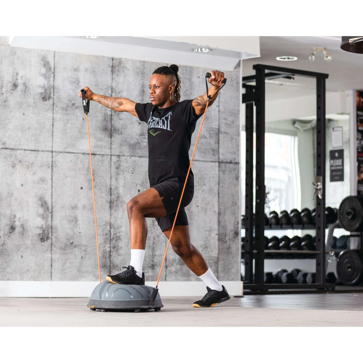 The Everlast Balance Elite is an innovative fitness tool that engages every muscle for an effective total body workout. The natural latex tubing helps improve your range of motion. The anti-burst top can support a maximum weight of 264lbs/126kgs, making it a suitable choice for many fitness enthusiasts. The textured surface provides slip resistance and stability so you can maintain good form during your workouts. With a durable ABS base, this high quality Balance Elite is a perfect tool for your at home equipment collection. Start getting the most out of your total body workout by targeting the glutes, obliques, abs and quads, without bulky weights.