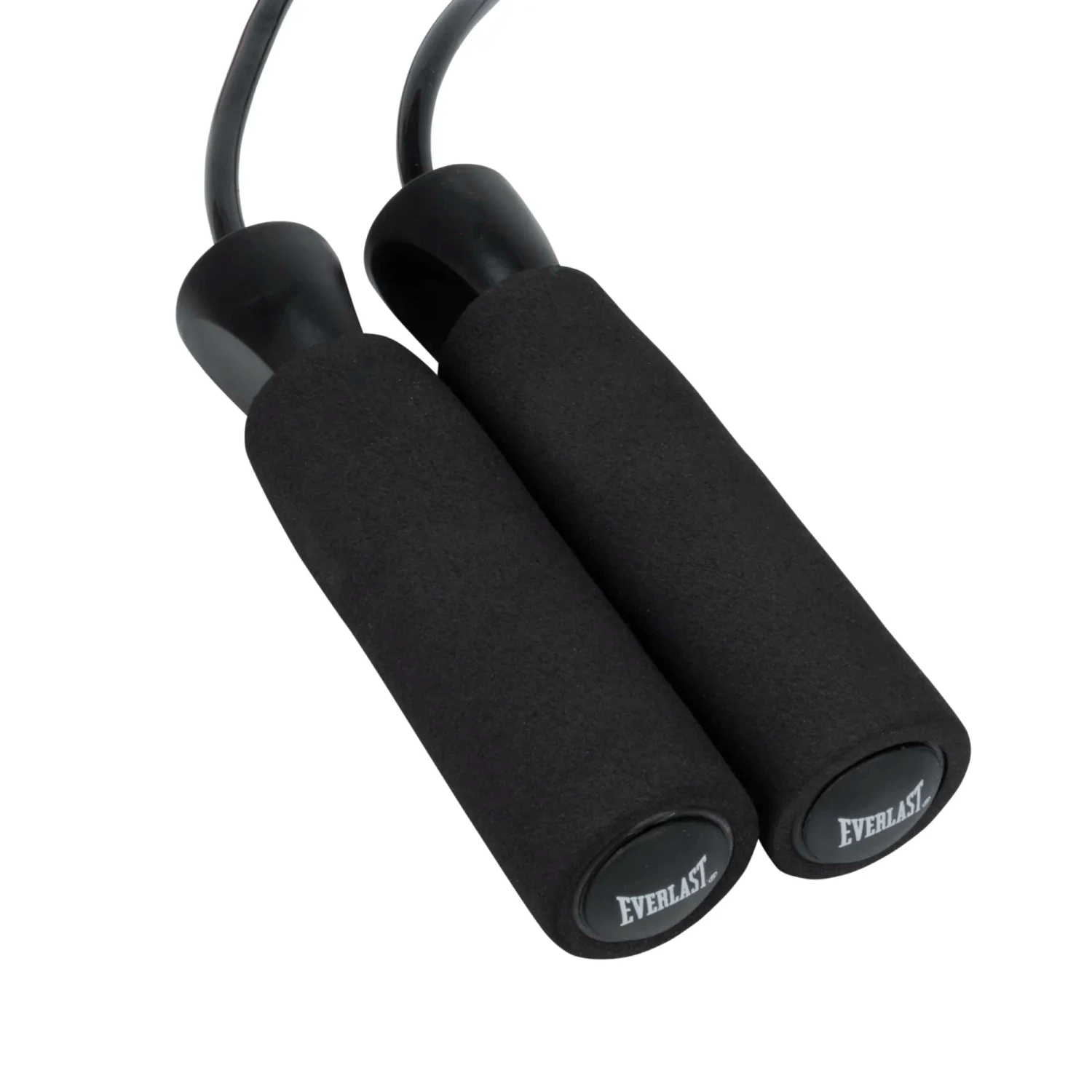 The durable, lightweight and portable speed rope is excellent for cross-overs, side jumps, double-overs, skips and other combinations that you can integrate into your workout. Made with durable rubber, this speed rope has a length of 9 feet (2.7 m), making it ideal for all fitness levels and all heights. It features a precision ball-bearing rotation for increased speed. The cushioned handles design provides comfort during your workout.