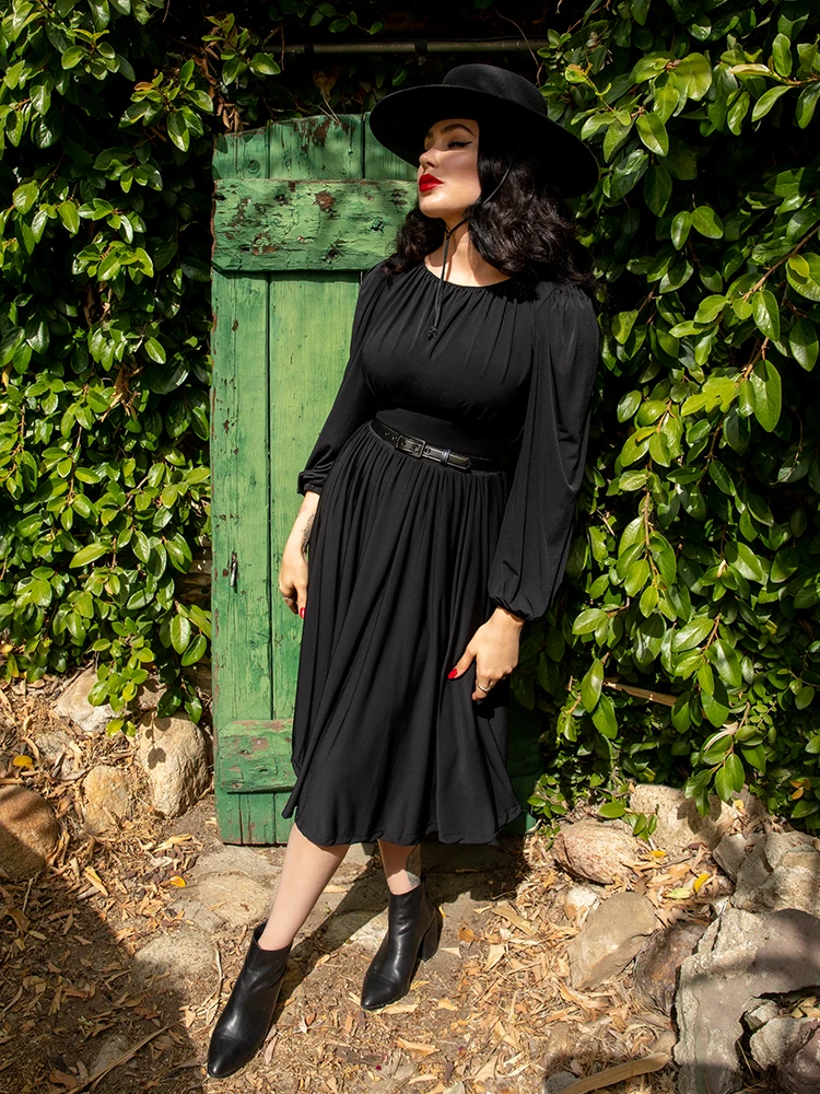The Salem dress is made in our popular knit jersey and transforms effortlessly from work appropriate to date night polished. This versatile dress also travels well. The bracelet length bishop sleeves add a dramatic flair. The fully lined dress hits around mid calf, has a center back invisible YKK© zipper, and side pockets for added functionality. Comes with a 5/8″ matching belt.