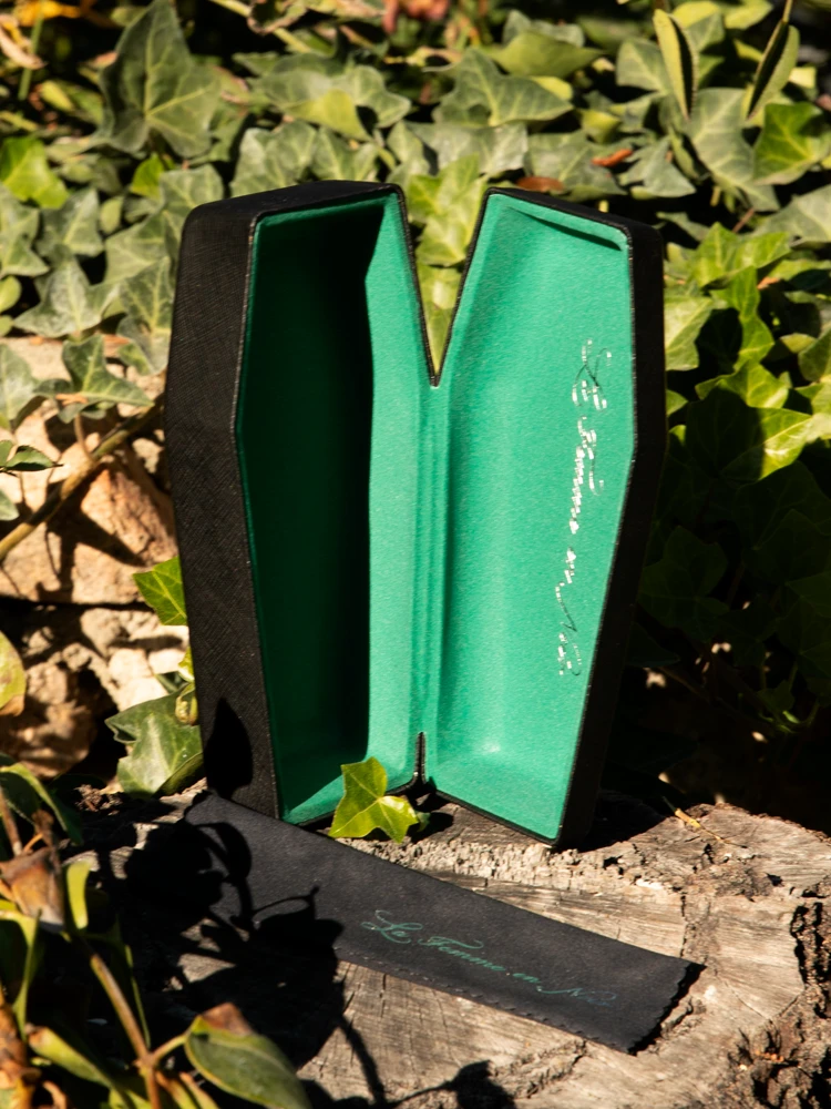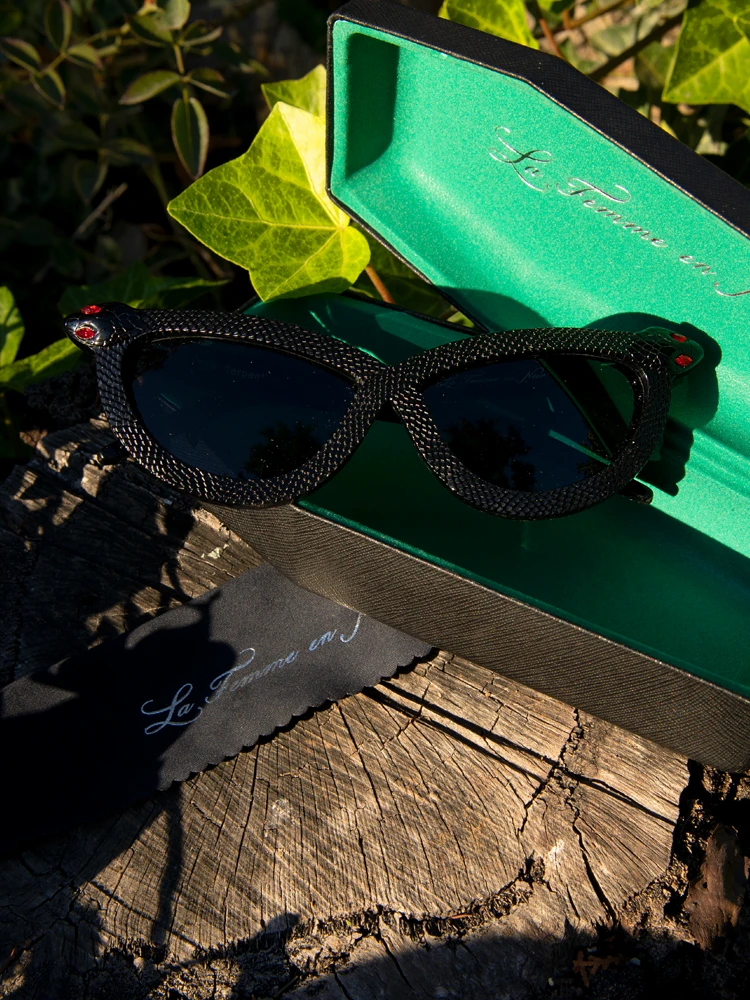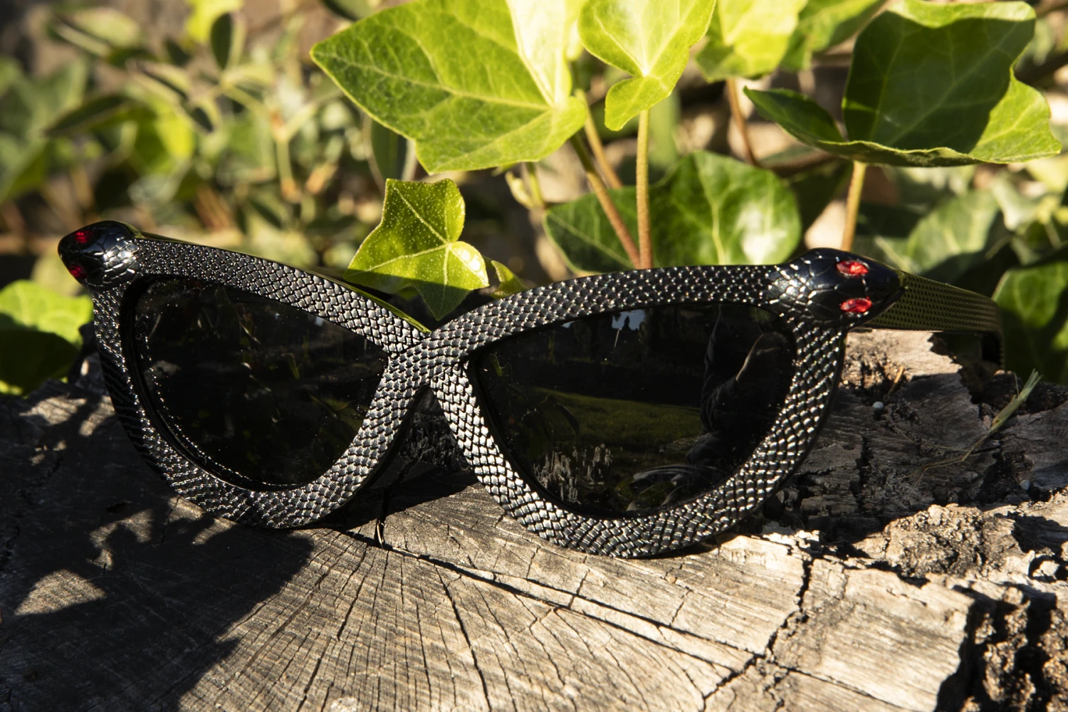 Serpents represent rebirth, guardianship, medicine, and have long been a mystical symbol across the world. Our exclusive designed sunglasses are inspired by the rare hand carved “Cabana Sunglasses” from the 50’s by Paulette Guinet.Ā We’ve modernized it with polarized lenses and ophthalmic quality acetate frames that can hold your own prescription lenses up to 500 diopters. Ruby Swarovski Ā® crystals adorn the serpent eyes.Ā These high quality frames come with our signature designedĀ faux leather coffin case lined in green and cleaning cloth and our logo box.
