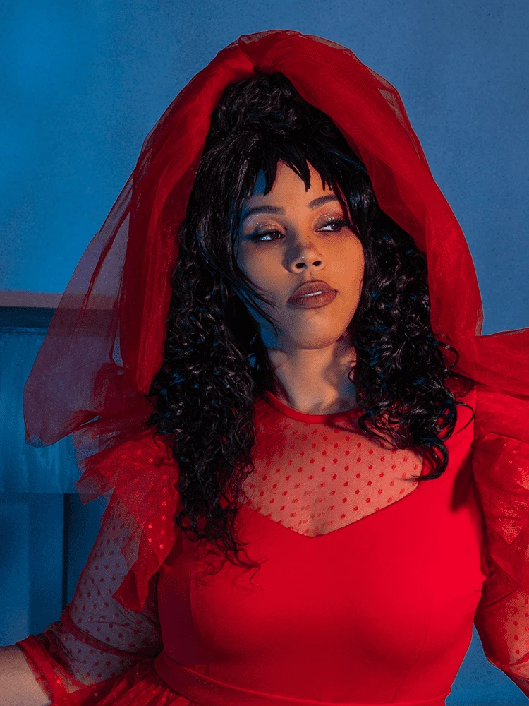 Made from a fine mesh tulle, this veil is the perfect accessory for any emo gal who loves a little color. It attaches with a sewn-in hair comb and features two layers of tulle.