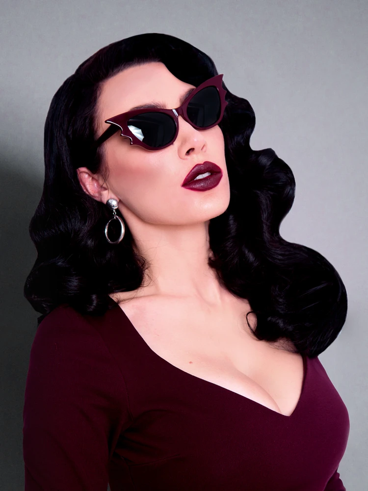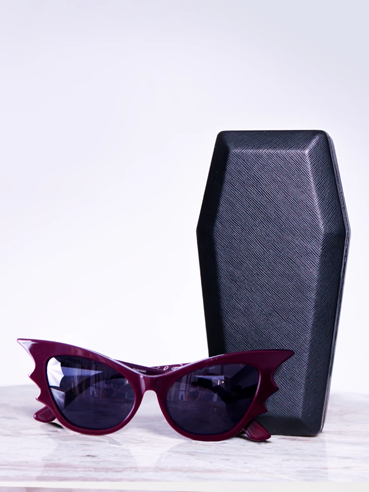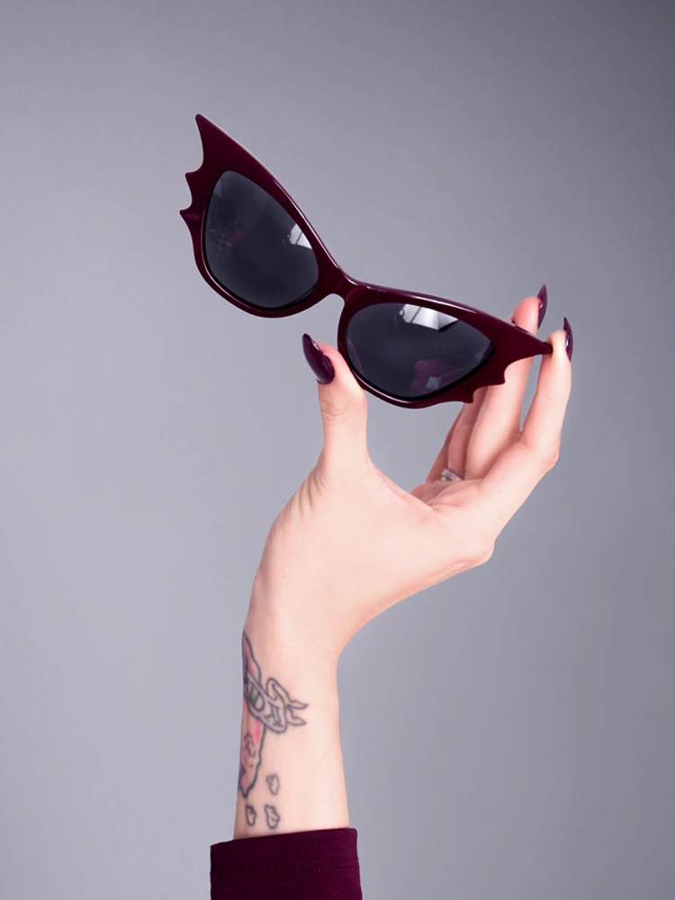 These unique batwing cat-eye frames are quite special! Instead of the single point, it has three that create a batwing effect. Inspired by vintage frames from Peggy Guggenheim’s infamous bat shaped frames with a dark twist.