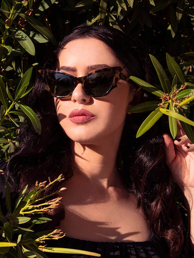 These unique batwing cat-eye frames are quite special! Instead of a single point, it has three that create a batwing effect. Inspired by vintage frames from Peggy Guggenheim’s infamous bat-shaped frames with a dark twist.