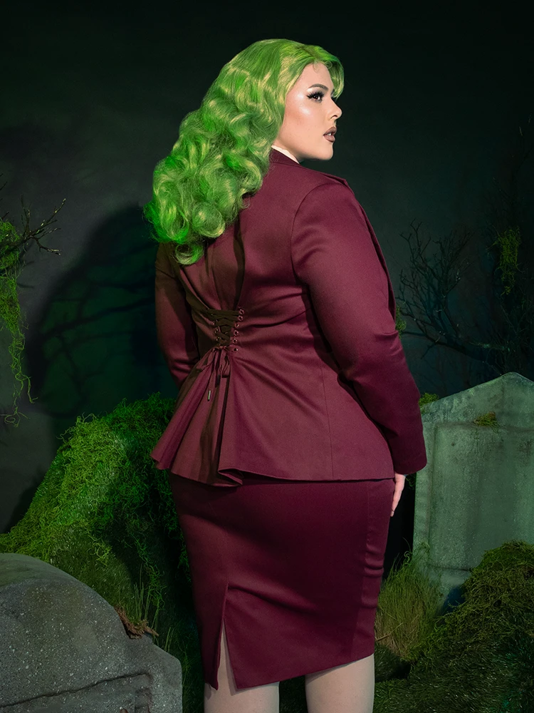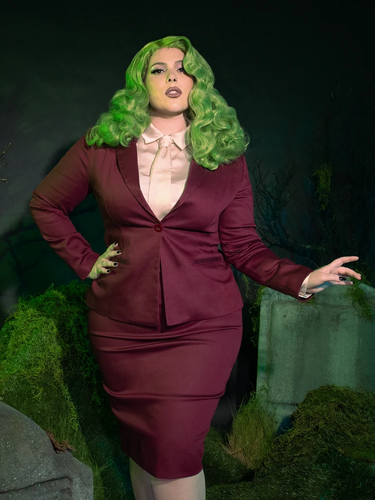 Indulge in the timeless glamour of our renowned pencil skirt, now reimagined in a luxurious stretch ponte fabric. The dynamic Vamp pencil skirt effortlessly accentuates curves, sculpting a flattering silhouette for those with extreme waist to hip measurements. Exquisitely crafted with a back zip, fused waistband, and a soft satin lining, this form-fitting skirt is complete with a back slit for graceful movement. Elevate your waistline with this elevated piece, designed to be worn at the true waist.